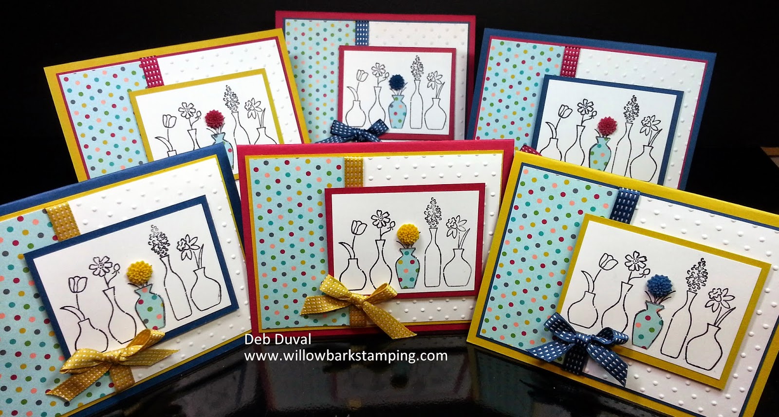 At my team meeting this week the challenge was to create swap cards using the In-Colors 2012-2014. These are the cards I made using the wonderful Dahlias that coordinate with the In-Colors. I thought I had the matching In-Color Designer Series Paper but I didn’t so I checked out the Birthday Basics DSP which has these awesome colours in it. The Vivid Vases from the Occasions Catalogue is so versatile; we can colour it, leave it as an outline or we can cut DSP and cover the vase. Very simple.